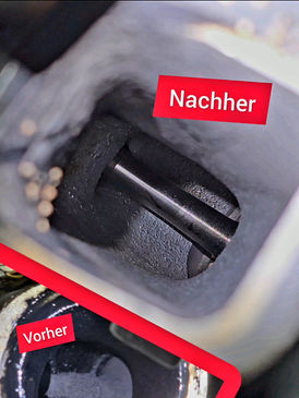 Anschließend wird der Einlasskanal inkl. Einlassventile mittels "Walnussschalen-Granulat" abgestrahlt um die vorhandenen Ablagerungen zu lösen.